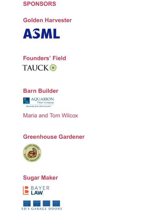 Once Upon a Farm Celebration at Rolling Hills Country Club. Invitations will go out in February, but mark your calendars now to join us for a bluegrass band, delicious food, open bar, live auction, and celebrations of Wilton's beloved Ambler Farm. Note: Attendees must be 21+.